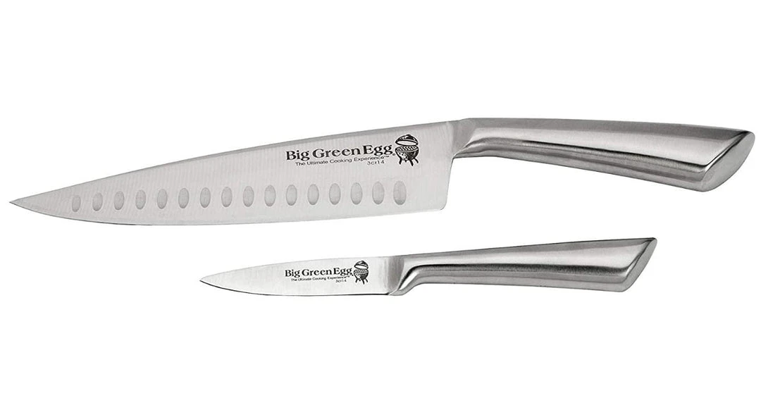 The Big Green Egg Stainless Steel Knife Set is a welcome and trusty addition to your food prep kit. The kit includes two quality stainless steel knives: one 8″ chef knife and one 3.5″ paring knife. Each set includes two edge guards to keep your knives nice and sharp!