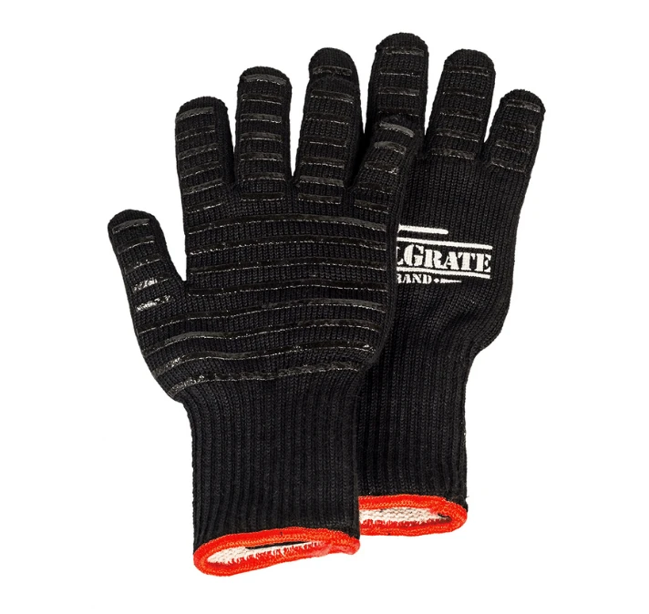 Grill in style and safety with The Grate Gloves! Manufactured from high quality breathable, heat-resistant kevlar fiber with non-slip silicon. The Grate Gloves are perfect for manuvering hot GrillGrates or brushing down and cleaning a hot grill