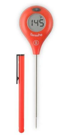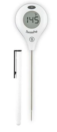 The first rotating display pocket thermometer, the ThermoPop is another innovation from ThermoWorks. A simple button press rotates the display in 90 degree increments. Hold the ThermoPop in either hand or read it when it’s upside down. Any angle is convenient!