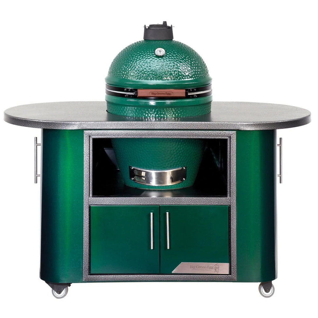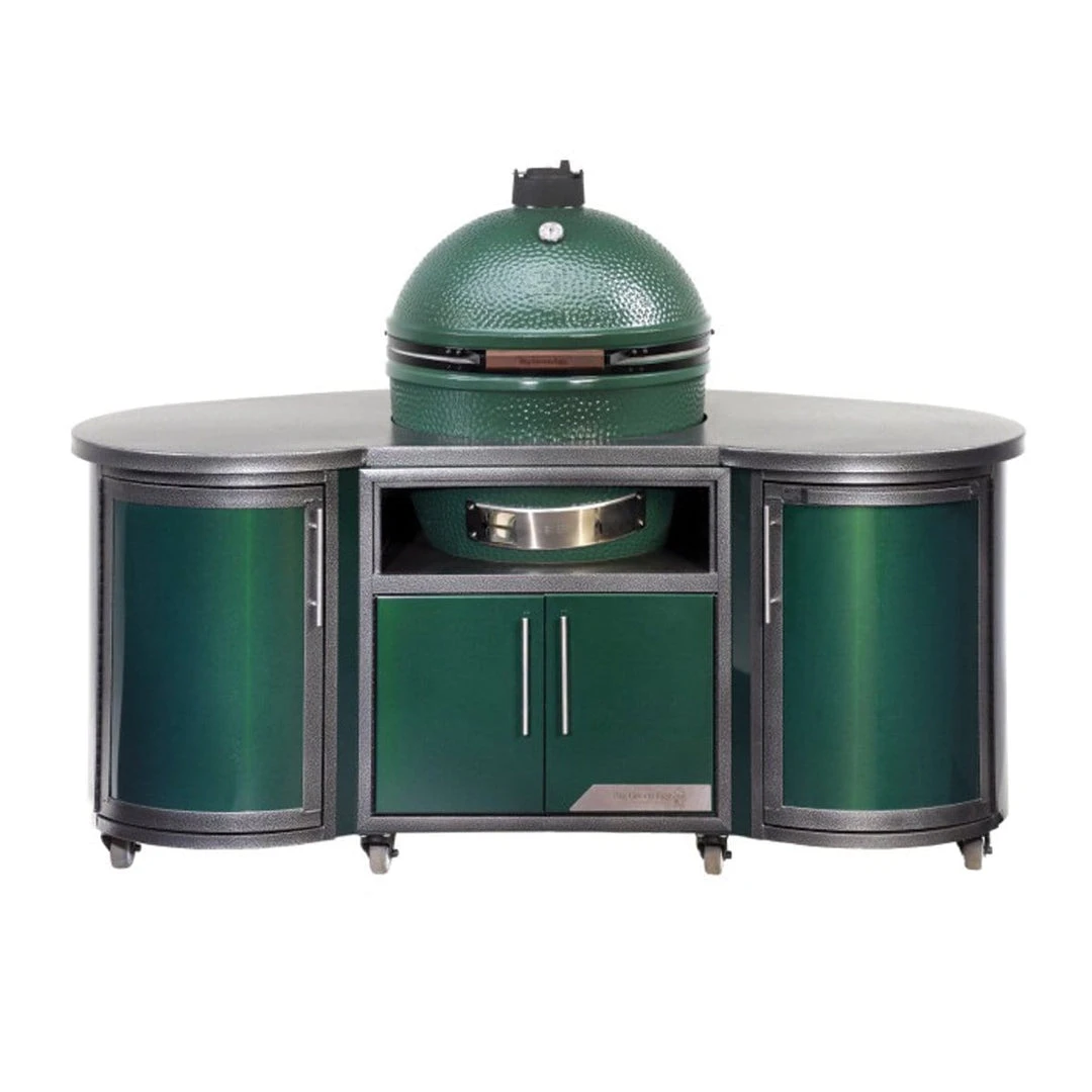 The unique rounded contours of the cabinet and top counter design, which are exclusive to Big Green Egg, create a functional home for your EGG that adds a striking design to any backyard!