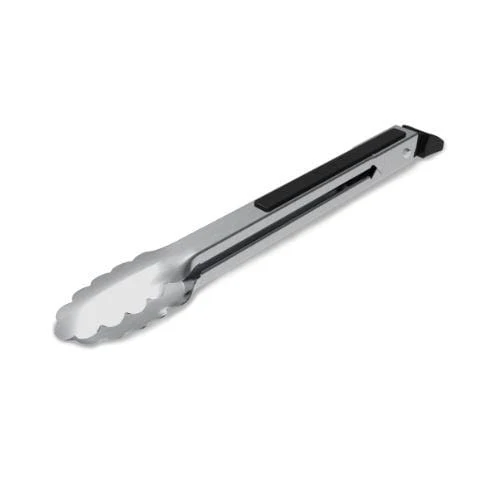 Broil King’s Stainless Steel Baron Tongs feature one scalloped side for gripping and one flat side to easily scoop up foods.