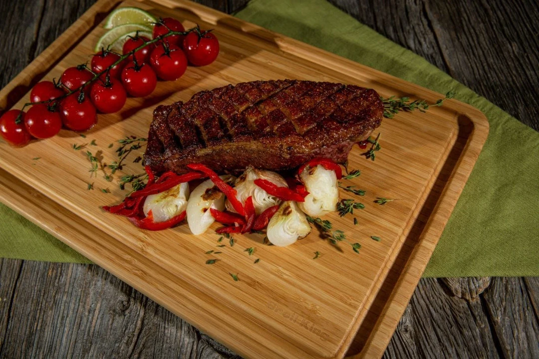 Prep, cut, and serve delicious food on the Broil King Baron Bamboo Cutting & Serving Board! This carving board features a large moat to trap drippings and an easy pour spout to easily dispose of them after the jobs done!