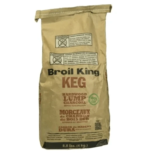 A custom blend of hardwood manufactured entirely form whole wood pieces rather than slab wood like most lump charcoal. Broil King Keg charcoal is an optimal mix of 1″ to 3″ size lumps which burn long and produce very little ash.