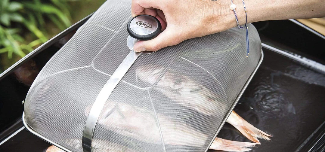 Cooking dome in stainless steel net, made to control the cooking and limit the splashes.
