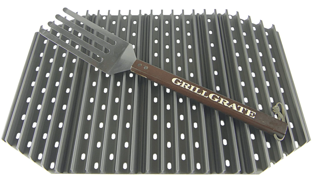 GrillGrates provide protected, high-heat grilling on most types of grills! The bottom plate prevent hot rushing air and flames from charring and drying out food, while keeping the juices sizzling instead of feeding the flames. GrillGrates are simple to use – just place them on top of your existing grate surface! Every set comes with a GrateTool which is part fork, part spatula that fits between the rails to get under your food and lift it without scraping.