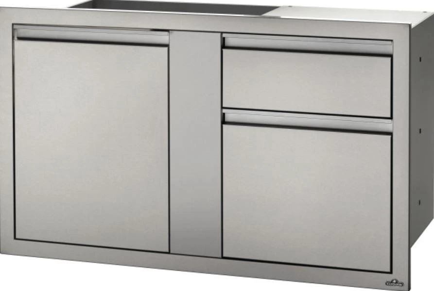 Creating your own custom grill island has never been easier with Napoleon’s Built-In Components. Every great outdoor kitchen needs storage; this 42″ x 24″ built-in component has everything you need for storage. Featuring a waste and recycling bin pull out, that can double as storage as well as a paper towel drawer, and a single large door for storage. The stainless steel construction, soft closing hardware, seamless trim, and anodized aluminum handles provide durability and endless installation possibilities.