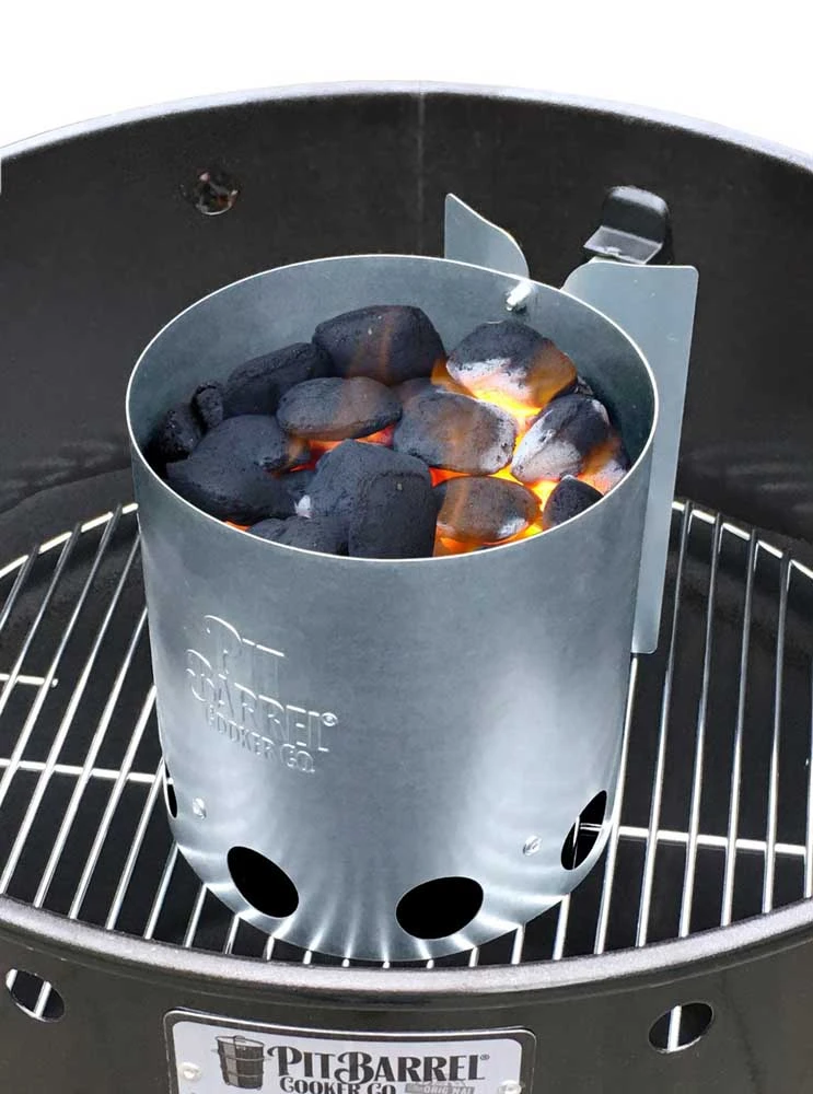 Don’t let lighter fluid get in the way of the unique and amazing signature Pit Barrel flavor. The Custom Pit Barrel Chimney Starter means there is no need for lighter fluid when it comes to getting a solid start to your cook.