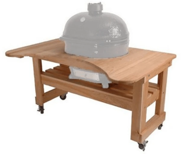 This PG00600 Cypress Table for XL 400 Oval Series X-Large Grill sturdy wooden table made from cypress is designed to fit a extra large oval grill. It includes 4 heavy-duty castors