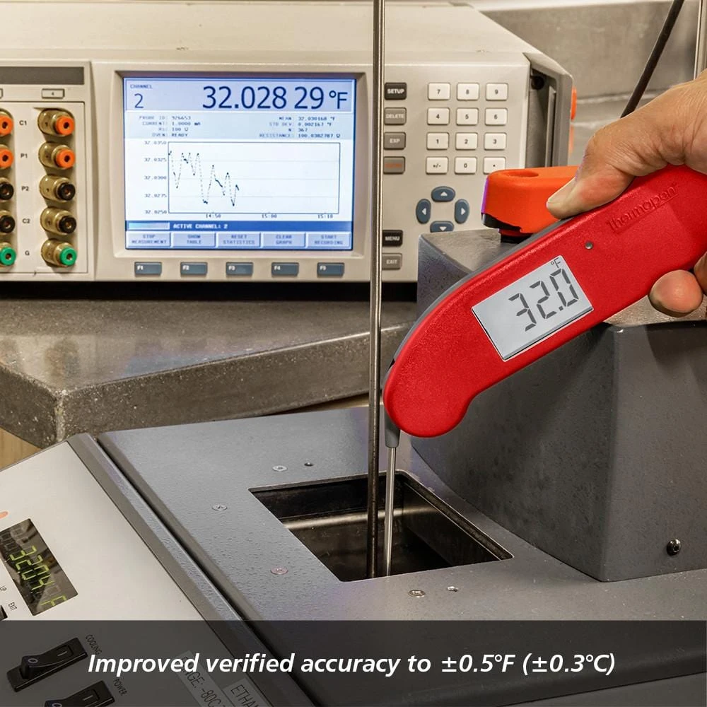 With full readings in ONE second or less, Thermapen ONE approaches the speed of thought—allowing you to focus exclusively on the quality of your work. Never has an instrument been able to achieve such speed and accuracy without sacrificing durability and usability…until now.