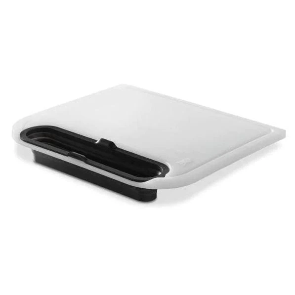Season burgers, slice veggies or rest steaks at your grill with ease. The Cut & Catch Cutting Board is perfect for grill side tables, providing prep and serve space with less mess. This durable cutting board features an integrated juice groove to prevent spills and a removable silicone catch bin that collects chopped ingredients or food scraps. When youโre finished chopping or cutting, simply remove the catch bin to transfer food to the grill or dispose of waste.